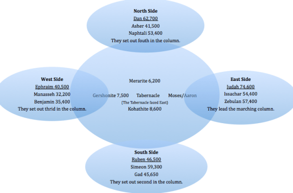 This is Israel’s camping arrangement and marching order as found in Numbers 2-4.