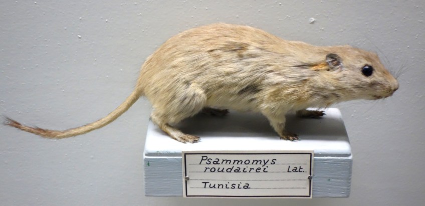 Psammomys_obesus_roudairei_(Psammomys_roudairei)_-_Museo_Civico_di_Storia_Naturale_Giacomo_Doria_-_Genoa,_Italy_-_DSC02815 Published January 31, 2015 at 5472 × 2654 in Rats in the Bible By Daderot (Own work) [CC0], via Wikimedia Commons