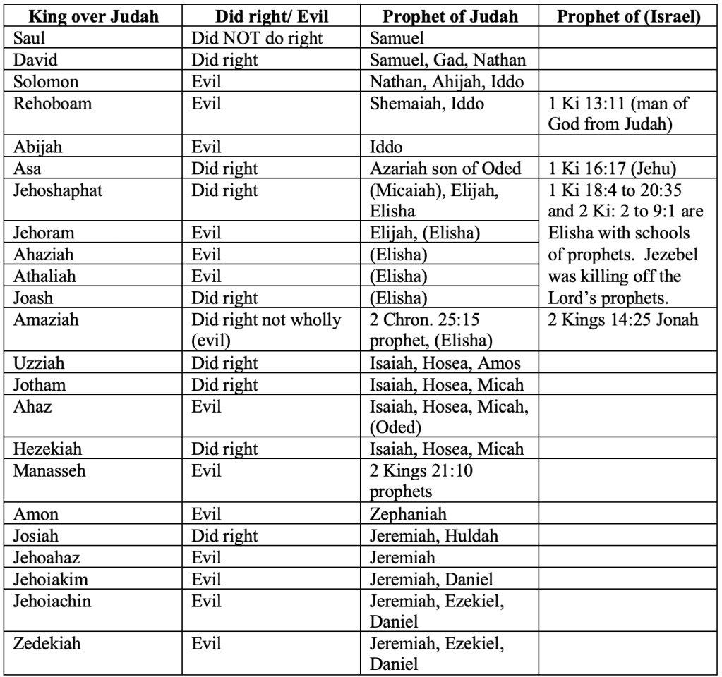 Kings and Prophets of Judah and Israel is a study help. I believe the prophets are paired with the king(s) they served with, there may be some over-lapping that I did not catch.